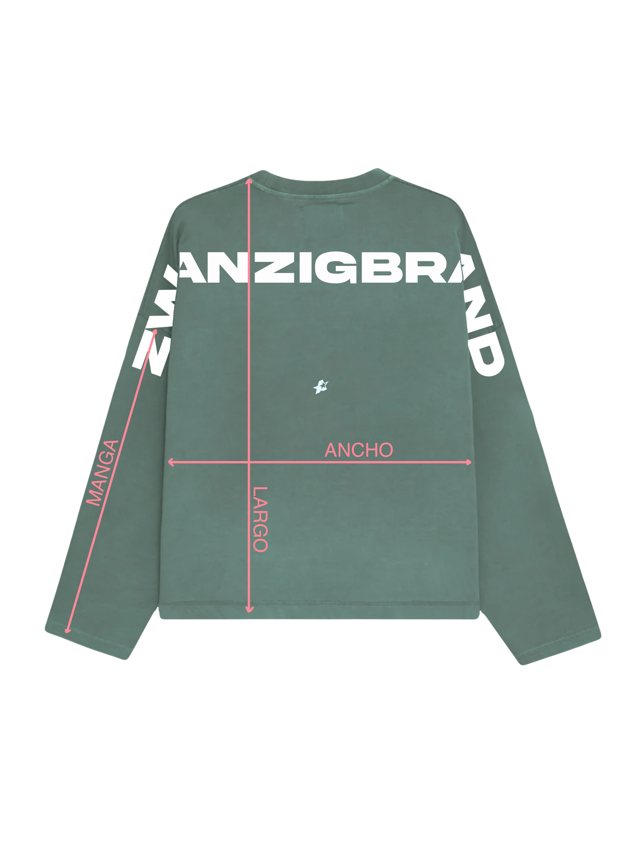 Sudadera sin capucha de color verde desgastado y corte oversize. Detalles en blanco en mangas, pecho y espalda.